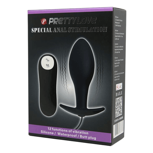 Чёрная анальная пробка с пультом управления - 8,5 см