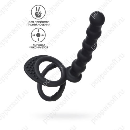 Этот 19.5-сантиметровый рыцарь в черном силиконовом доспехе — ваш верный оруженосец. Его миссия? Удвоить ваше влияние! Два кольца — у основания ствола и под яйцами — обнимают вас с почти рыцарской верностью, даря приятную стесненность, которая продлевает ваш триумф. А ваша дама в это время почувствует не просто вас, а целую силуэтную симфонию: ваш естественный контур плюс 12.5 сантиметров рельефного силикона с шариками, которые будут играть по ее самым сокровенным клавишам, как виртуозный пианист.