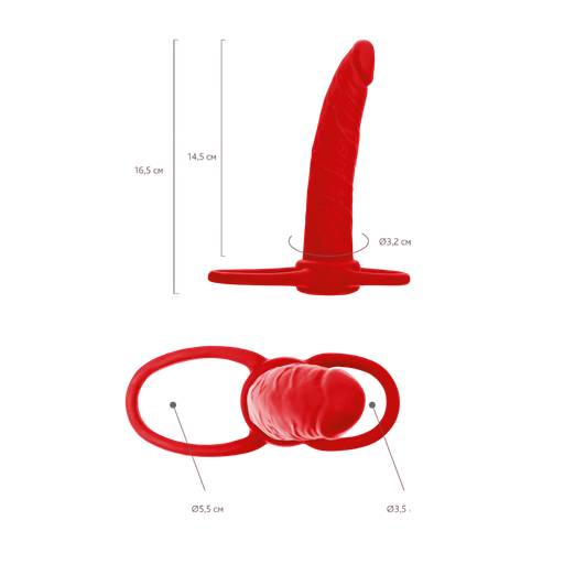 Её облик говорит сам за себя: страстный красный цвет, обманчиво реалистичная форма и бархатистая поверхность из нежного силикона, которая так приятна на ощупь. Зауженный кончик играет роль джентльмена – он гарантирует легкое и комфортное начало. А два эластичных кольца – это как верные помощники, которые надежно фиксируют аксессуар на своем месте, плотно обхватывая основание, чтобы ничто не помешало вашей страсти.
