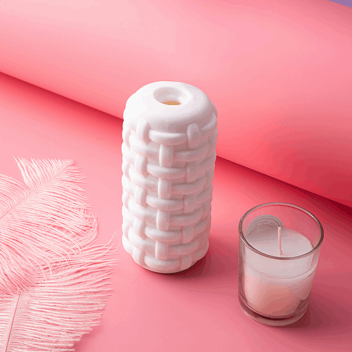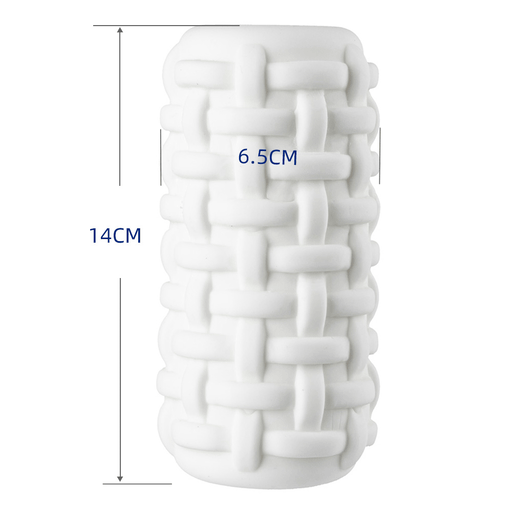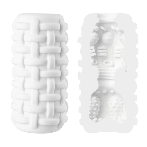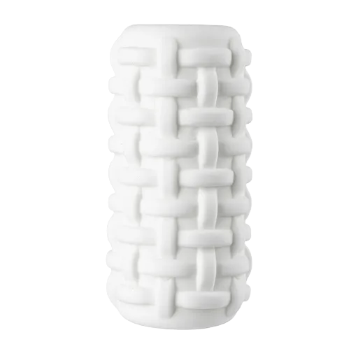 Внешняя поверхность напоминает плетёную корзинку: рельефная «кирпичная» структура аккуратно выступает наружу, создавая комичный, но очаровательно строгий образ — будто этот мастурбатор пришёл с другой планеты, где кирпичи умеют обнимать. Цвет — чистый белый, контрастирующий с архитектурой рельефа, делает модель строгой и в то же время невинной.