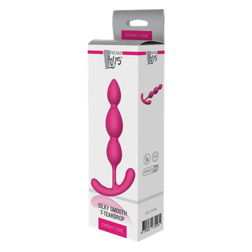 Розовая анальная цепочка Silky Smooth T-Teardrop - 14 см